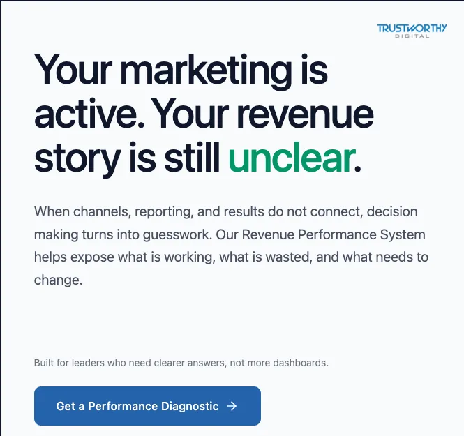 This ad leads with accountability rather than pain or contrast. It targets leaders who are already under pressure to justify spend and connects budget to measurable revenue outcomes. Different motivation, different emotional trigger, same audience.