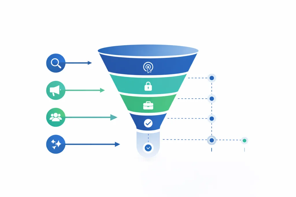 Pipeline does not break in one place. It breaks across handoffs: from search to landing page, from lead to qualification, from follow up to close. We work across the entire path to remove friction and improve conversion quality.