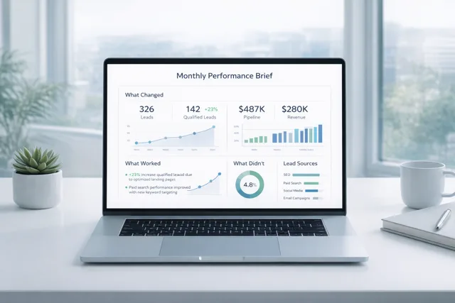 - Monthly executive performance brief: what drove pipeline, what did not, what changes next